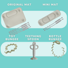 Our Mats roll up and store away for easy, mess-free transport. These will be your go-to travel accessories. The Bottle Bungee and Toy Bungee attach to stroller handles or car seat bars while allowing baby to still access their favorite toy, bottle, or cup.