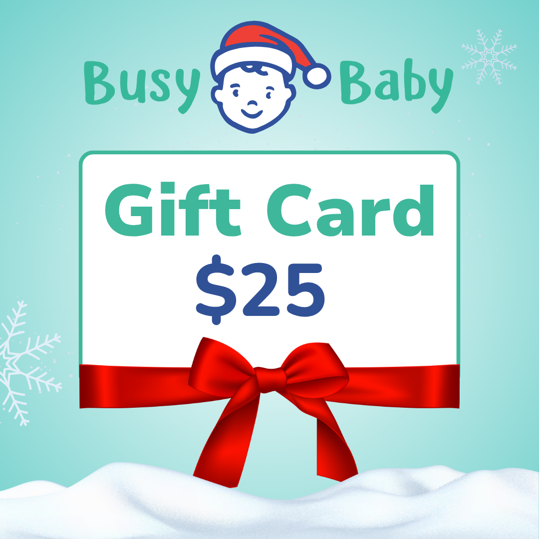Gift cards are delivered instantly via email to the address on the order and never expire. Available in amounts from $25 to $100, these flexible gift cards allow parents to select exactly what they need for their little one. Whether it's our innovative feeding solutions, trusted teething products, or smart on-the-go accessories, you can't go wrong with a Busy Baby gift card.