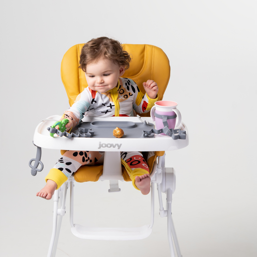 Whether used during playtime or mealtime, our Mat with tether & bungee system supports sensory development, helps build fine motor skills and problem-solving skills. Our feeding accessories, especially our Teether & Training Spoon, are uniquely designed to support baby-led weaning and feeding independence.